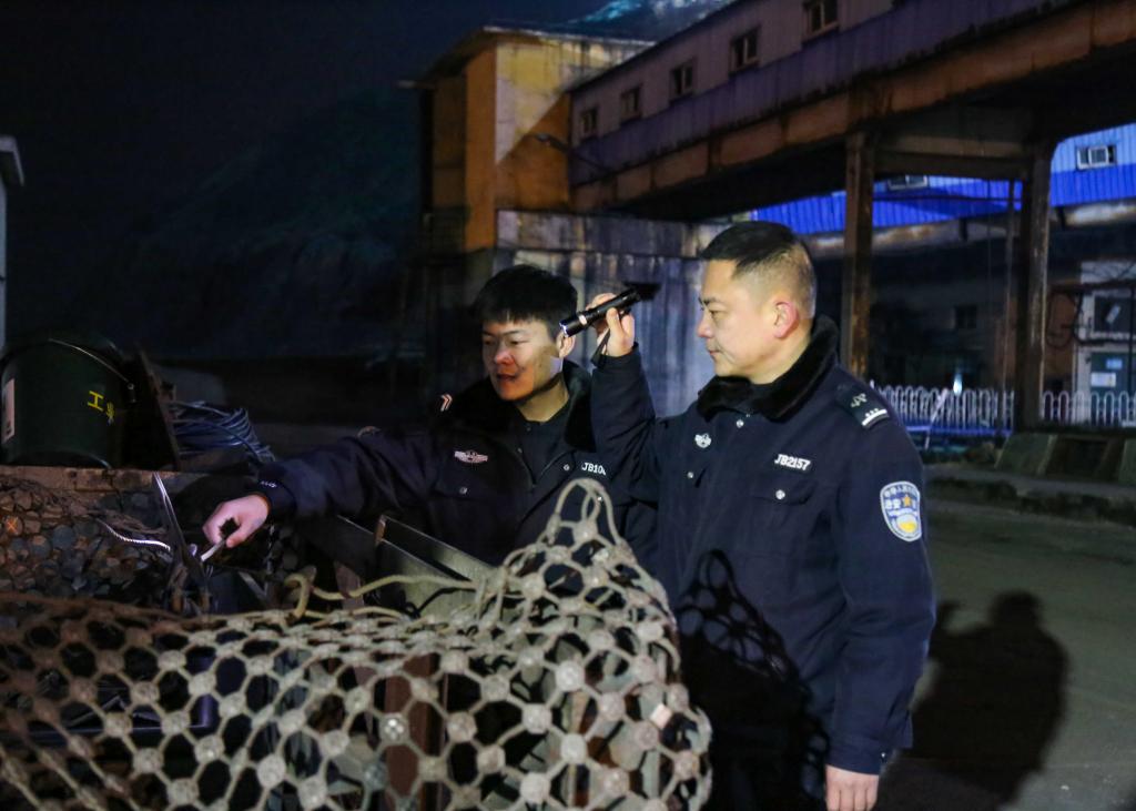 坐标:供应销售部西侧,除夕夜23点31分,两名物业公司治保队员进行夜间宁静巡逻。