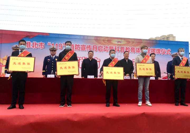 11月5日上午,在淮北市“119”消防宣传月运动启动暨市消防科普教育体验馆揭牌仪式上,金年会集团荣获“全市消防事情先进集体”称呼。