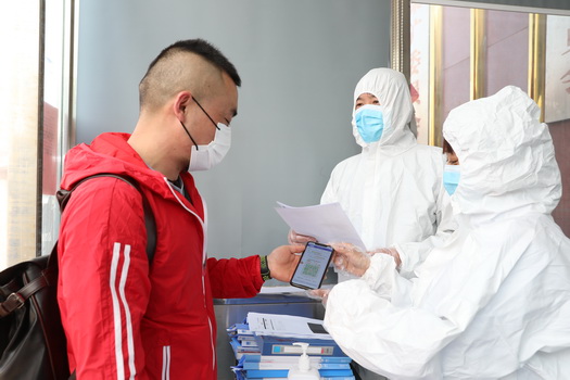 5ÔÂ2ÈÕÉÏÎç10:10£¬°ì¹«ÖÐÐÄÎ÷ßÚÖµ°àÖ°¹¤ËïÕý¹ú£¨×óÒ»£©ÔڶԷÿÍ×öÒßÇé·À¿Ø¡°Ë«Â롱¼ì²é¡£ËûÌåÏÖ£¬¡°ÎåÒ»¡±ÆÚ¼äÒ²ÒªÑϸñ°ÑºÃ¡°Èë¿Ú¹Ø¡±£¬¼á¾ö°ü¹ÜÒßÇé·À¿ØÄþ¾²¡£