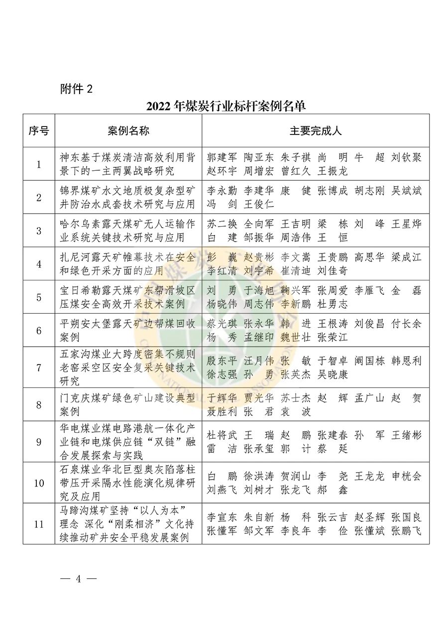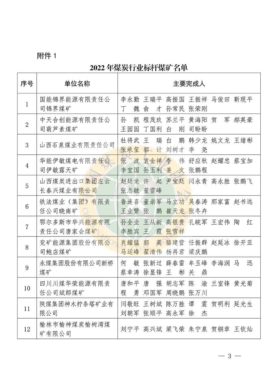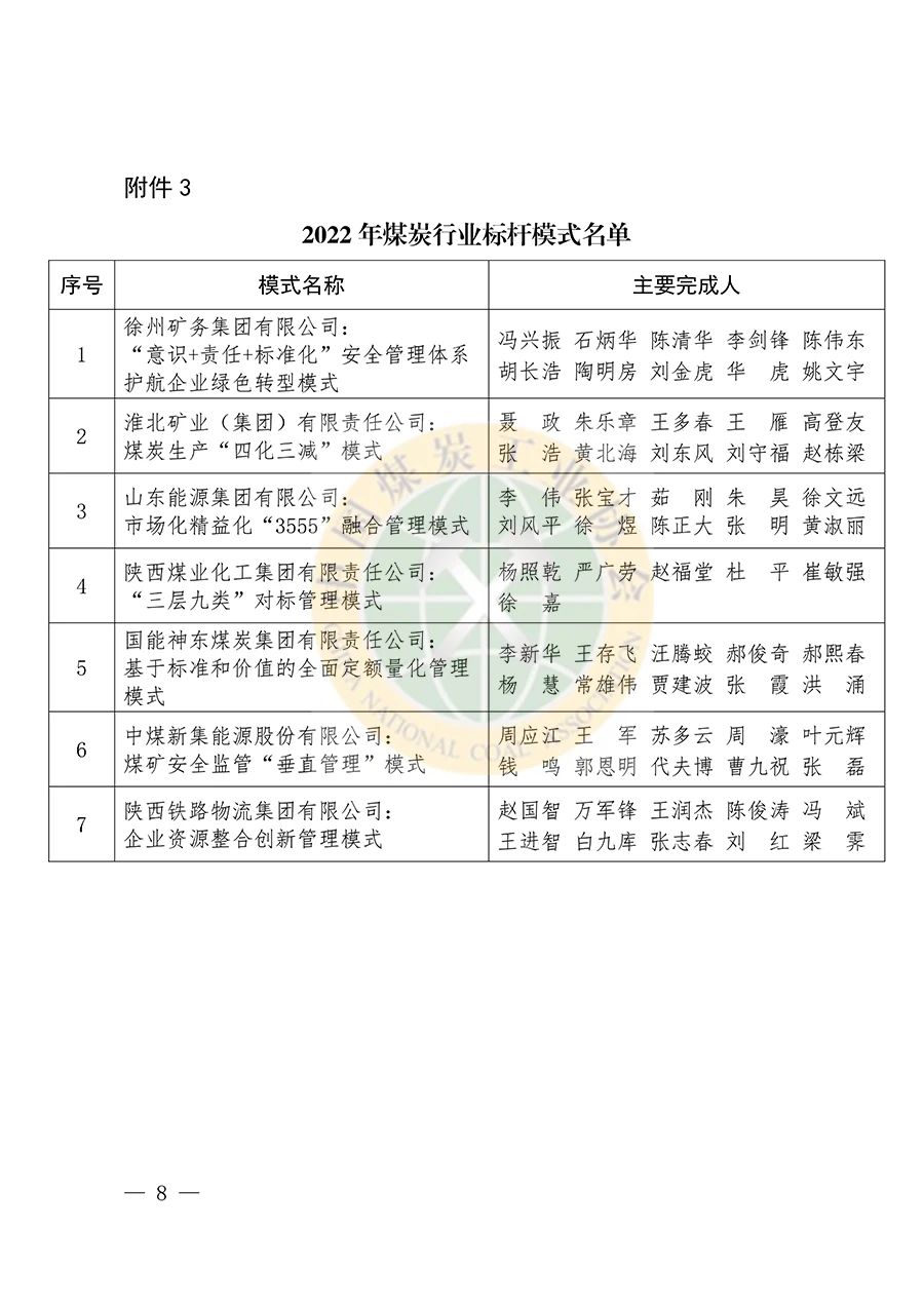 中国煤炭工业协会关于宣布2022年煤炭行业标杆煤矿、标杆案例和标杆模式的通知