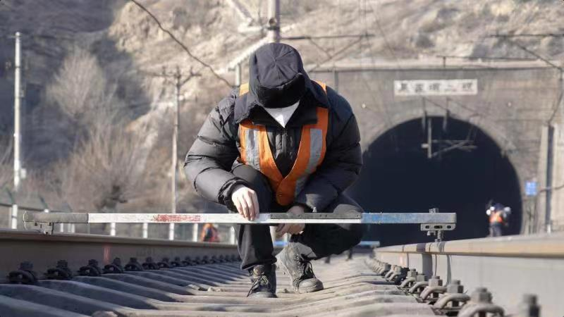 王家湾线路车间职工在进行线路维护。(中国铁路太原局集团有限公司供图)