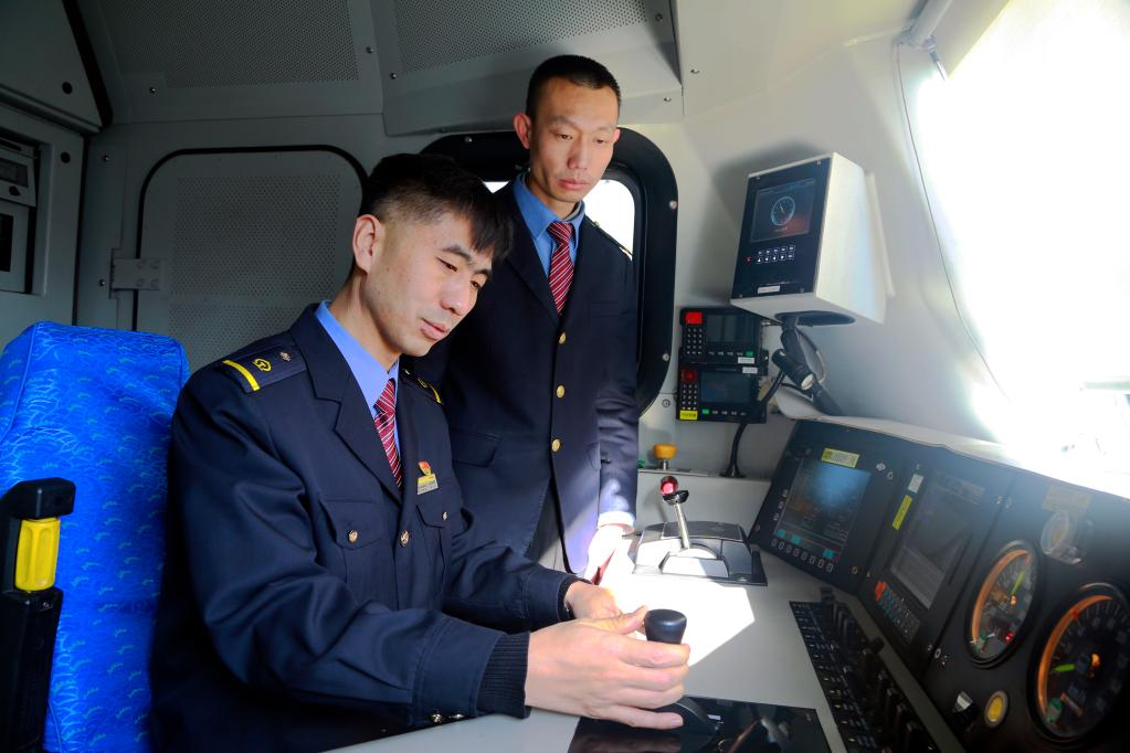 一连串应答声中 ,王亚军驾驶着列车徐徐驶离大同。